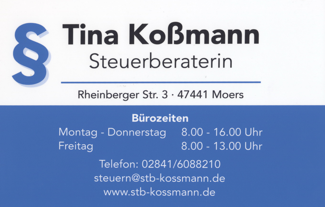 Kontakt & HP: www.haushaltskraefte.de eMail: schumachermonika@gmx.de Das Büro III: Kontakt & HP: www.stb-kossmann.de eMail: steuern@stb-kossmann.de